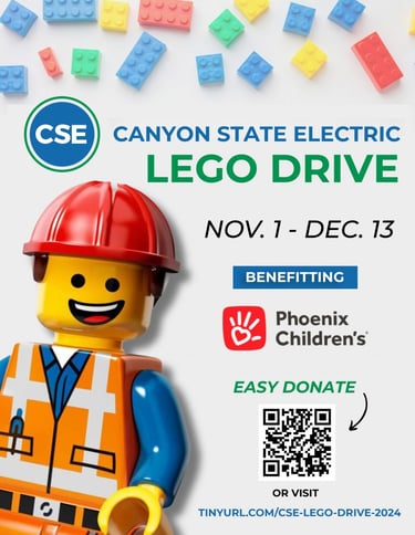 Phoenix, AZ, November 1 – Canyon State Electric (CSE) is collecting LEGO sets throughout November and December to benefit children suffering from illness. CSE’s LEGO Drive is returning for a third year, and sets collected in 2024 are benefitting Phoenix Children’s for their Holiday Toy Drive.