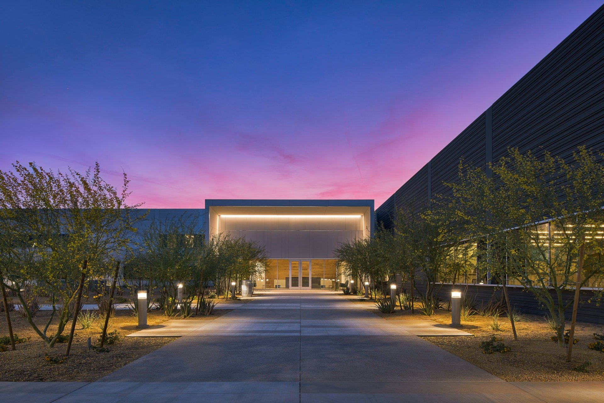 Description: A new corporate campus facility supporting satellite communications engineering, research, and technology development at the Arizona State University Research Park, designed to support continued innovation and workforce expansion.